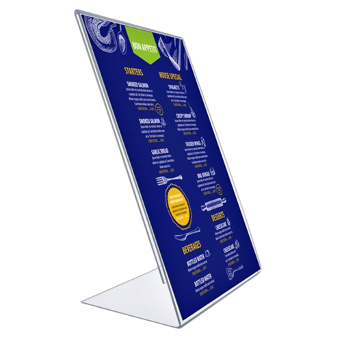 Daarnaast worden L-standaarden veel gebruikt voor menukaarten in horecagelegenheden. Restaurants en cafés kiezen vaak voor een L-vormige kaarthouder om een compacte menukaart te presenteren. Ook in veel winkels kom je L-standaarden tegen, om speciale acties, prijzen of aanvullende informatie te communiceren naar klanten.